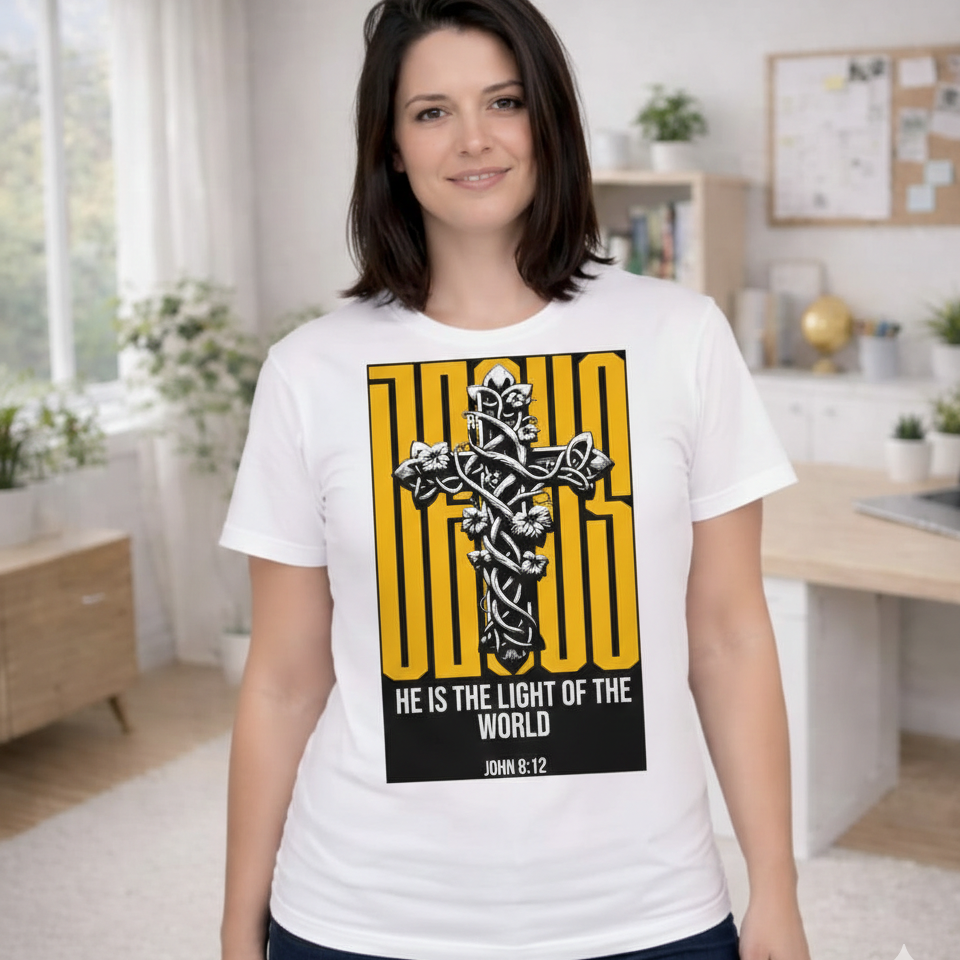A Camiseta Luz do Mundo é perfeita para quem deseja expressar sua fé com estilo e qualidade. Produzida em 100% algodão, meia malha penteada fio 30.1, ela oferece toque macio, excelente caimento e durabilidade superior.