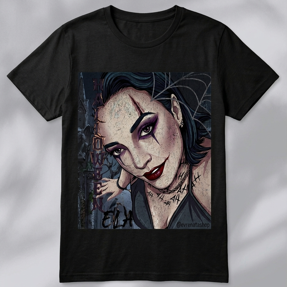 Camiseta personalizada RenataShop Ela com estampa Halloween, ideal para quem busca expressar alegria. Produzida em malha 100% algodão fio 30.1, garantindo conforto, maciez e durabilidade no uso diário. Modelo unissex, versátil e perfeito para eventos, festas e lazer. Estampa de alta qualidade com excelente acabamento.