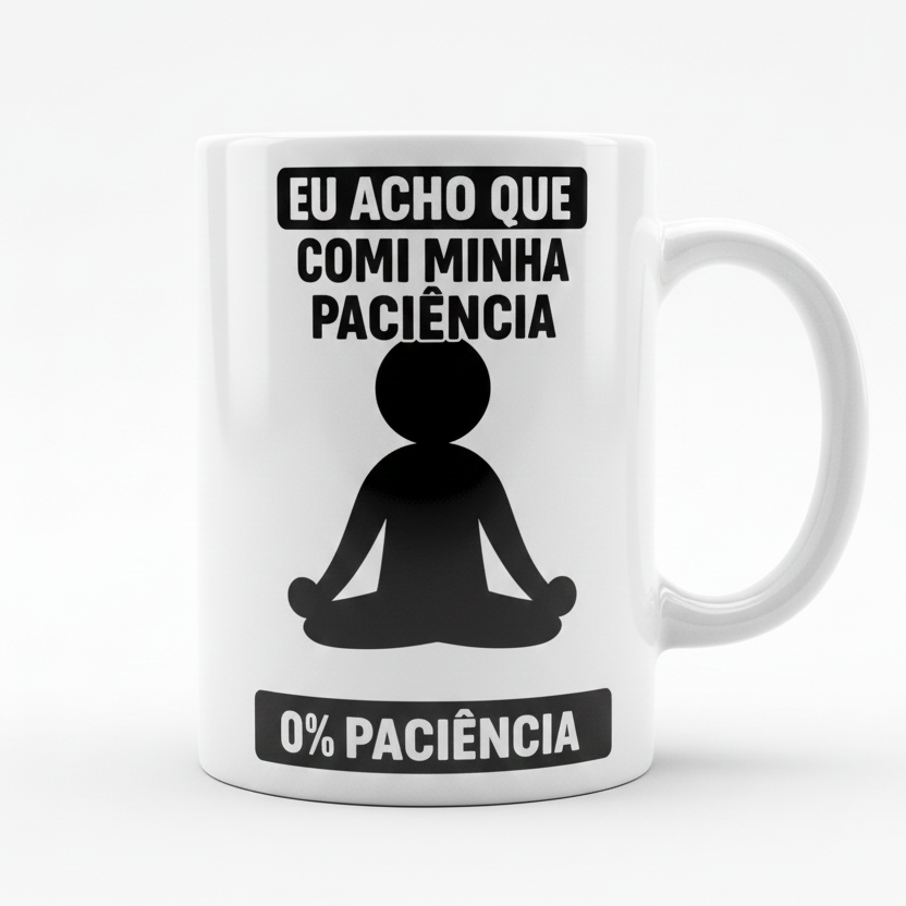 A Caneca Personalizada “Eu Comi Minha Paciência / Zero Paciência” é perfeita para quem ama humor sincero e gosta de expressar personalidade. Produzida em cerâmica premium, possui estampa de alta definição e acabamento brilhante, ideal para café, chá, chocolate quente ou aquele momento em que a paciência já começa no limite.