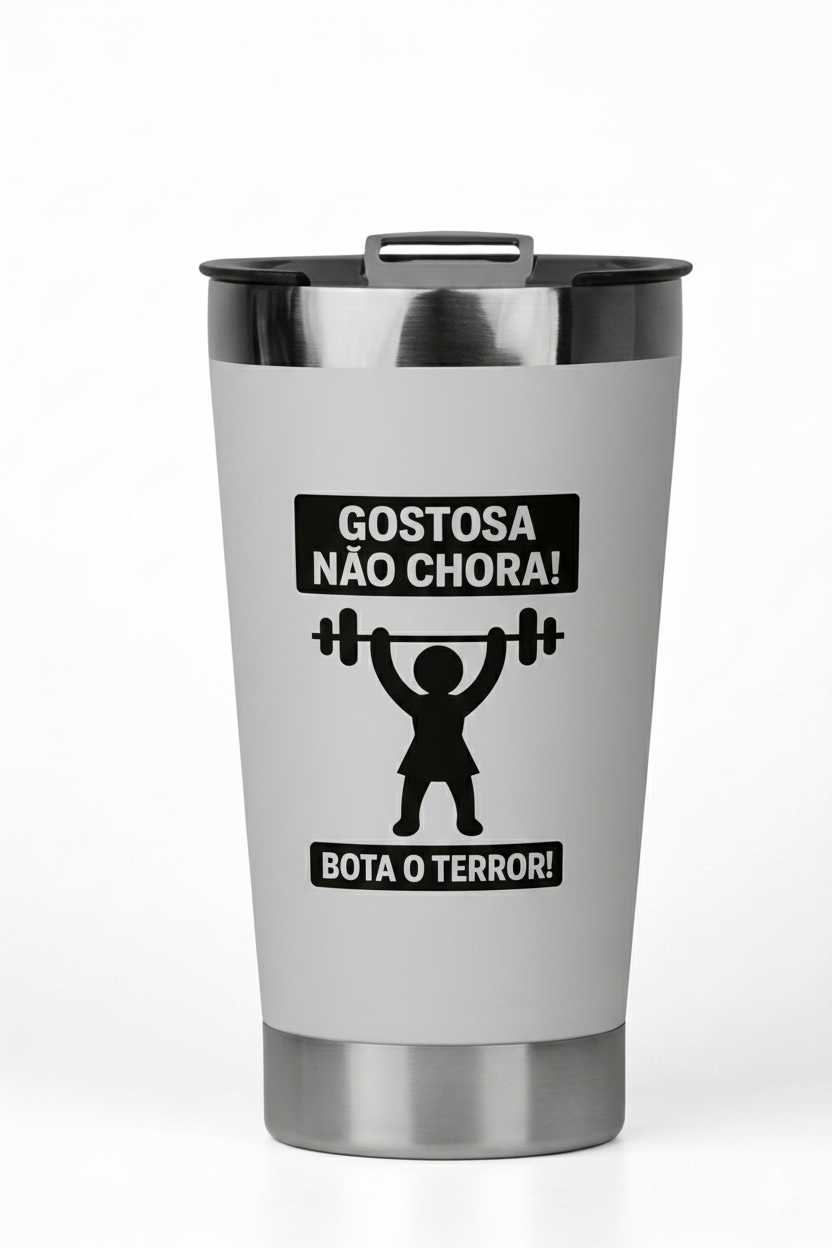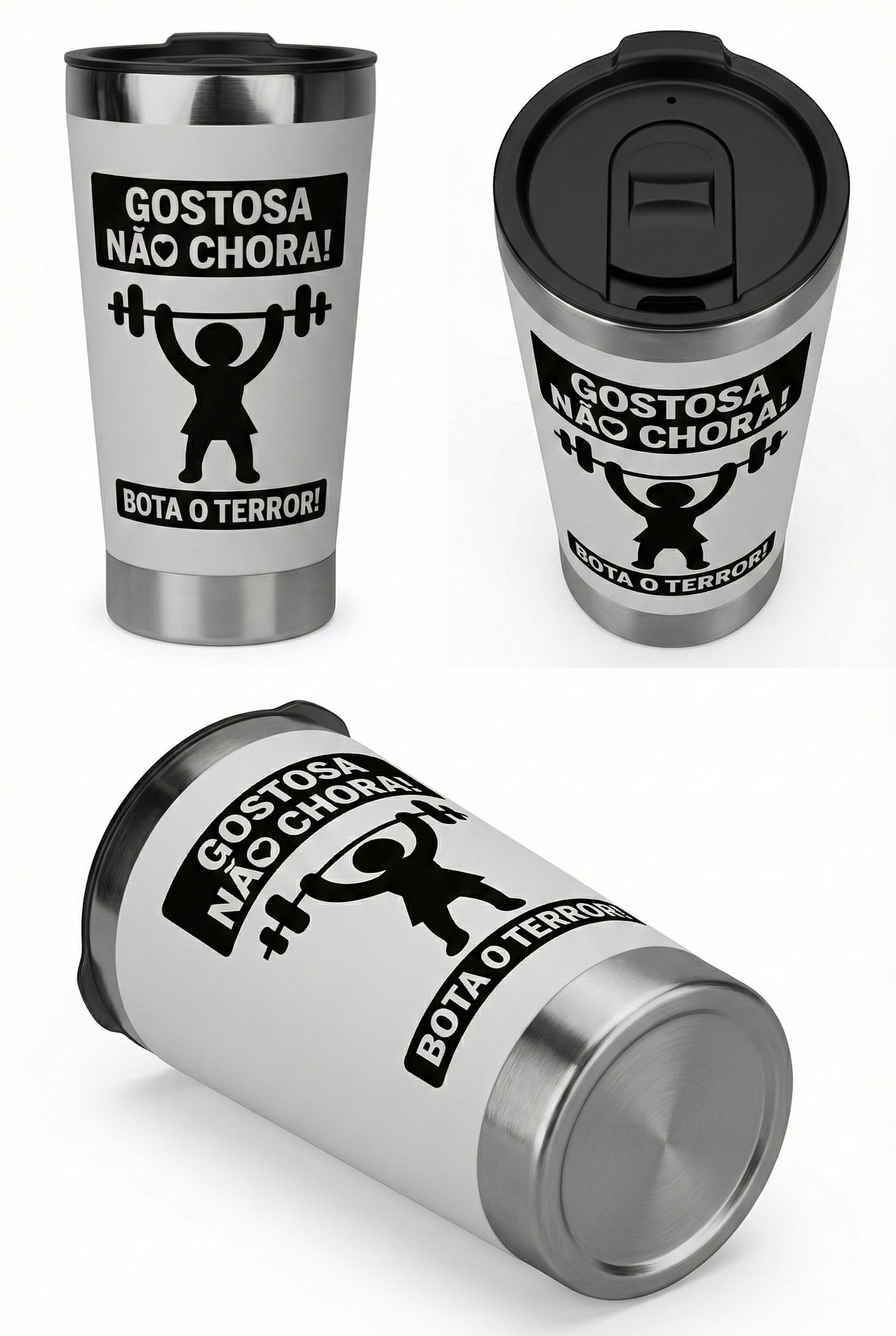 • Leve estilo, personalidade e bom humor para a sua rotina com o Copo Térmico “Gostosa Não Chora”. Perfeito para quem gosta de uma vibe divertida, moderna e cheia de atitude.